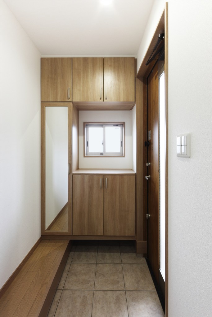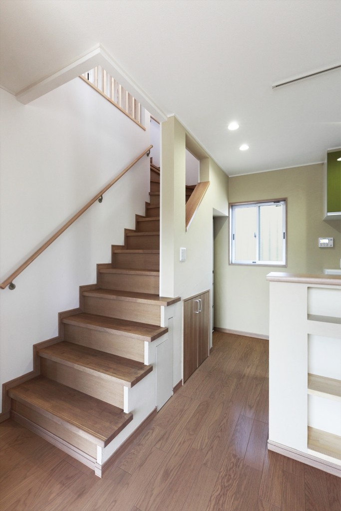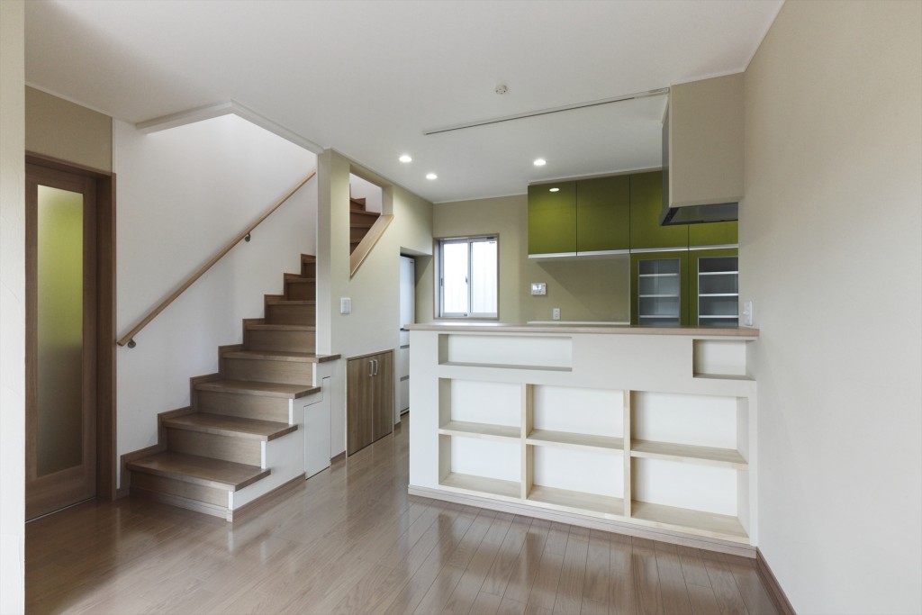 ご主人のご実家の敷地内に建てられた築40年超の古家を、新婚の若夫婦が「新居としてリフォームしたい!」ということでお問合せをくださったT様。旧耐震基準の古家のため安全性に不安があり、しっかりした工事ができる会社を探されていました。ご主人様は、建築系のお仕事をされていて建築士の資格をお持ちでいらっしゃたため、間取りから階段のデザイン・仕様など細部までじっくり打合せをし、他にはないこだわりの形に仕上がりました。シンプルながら機能性、収納量も抜群です。
