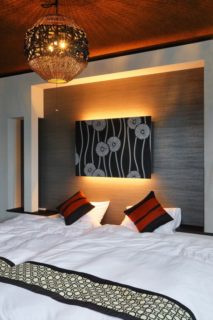 アジアンリゾートや和モダンをイメージした空間。間接照明を多用し非日常感を演出。