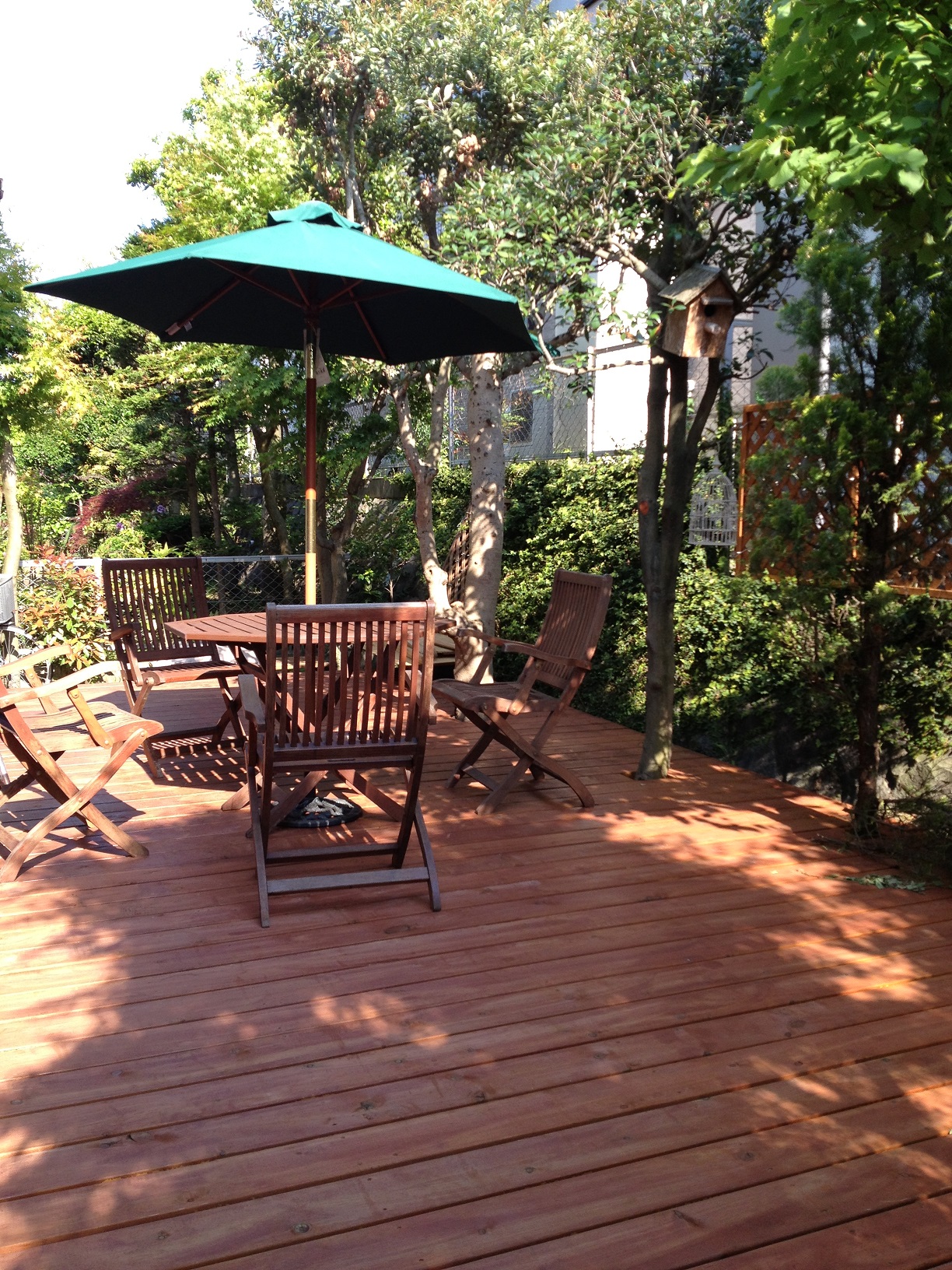 リビングの壁を珪藻土にしたことで空気感がガラリと変わり、以前よりずっと快適になったと嬉しいお言葉を頂きました。また夏はほとんどエアコンいらずで電気代の節約にも繋がりました。見違えるほどきれいになったウッドデッキでは、夏に家族みんなでバーベキューをしたいなど楽しみも増えたそうです!