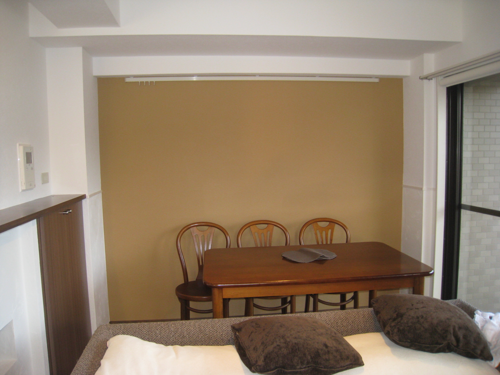 ダイニングは壁の一面を珪藻土で仕上げてアクセントつけました。