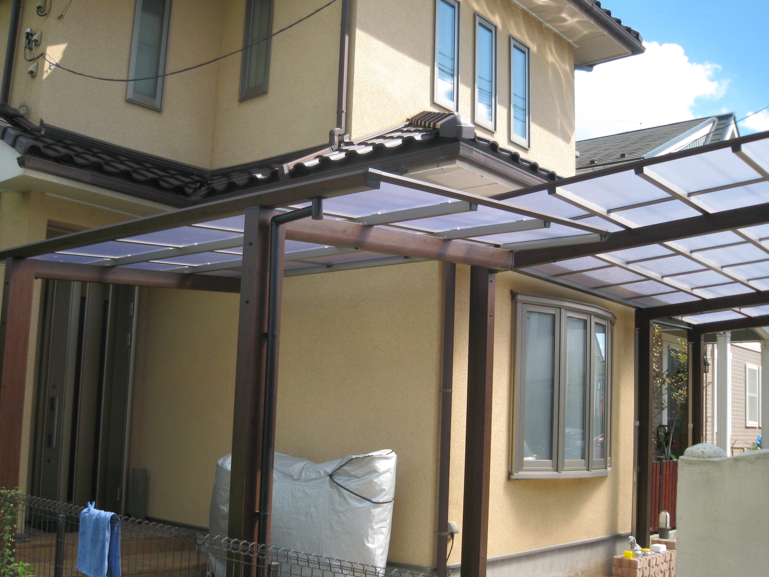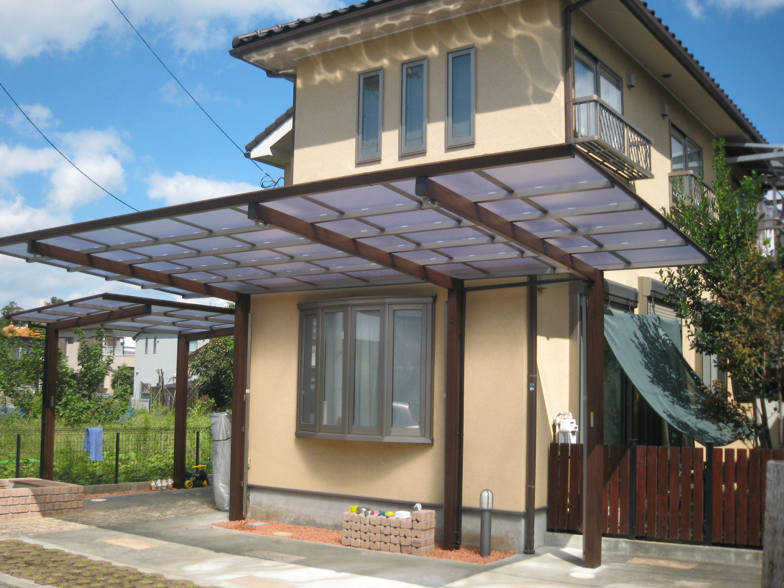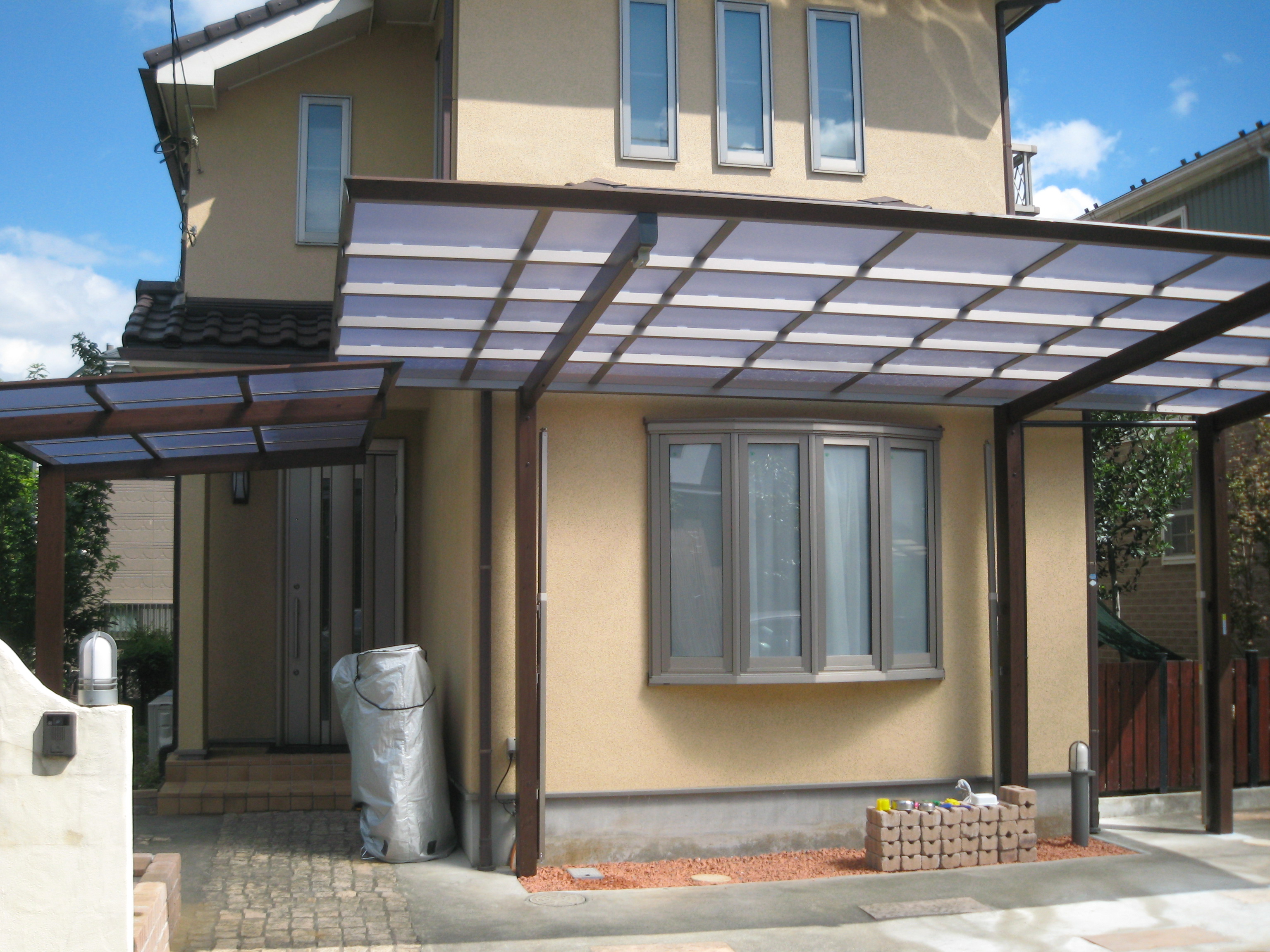 車1台が余裕で停められるハイルーフタイプのカーポートを新設しました。さらに玄関からアプローチ部分も雨除けようにカバーしました。これで雨の日も雪の日も外出が今までより楽になりました。
