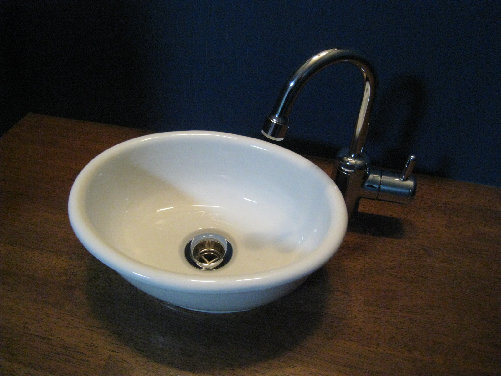 オーバル型の小ぶりなボウルにブースネック型の水栓を合わせました。