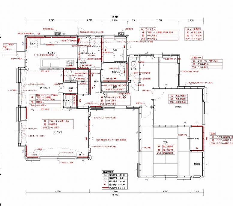 | 工事内容 | 1階全面リフォーム・耐震補強工事 |