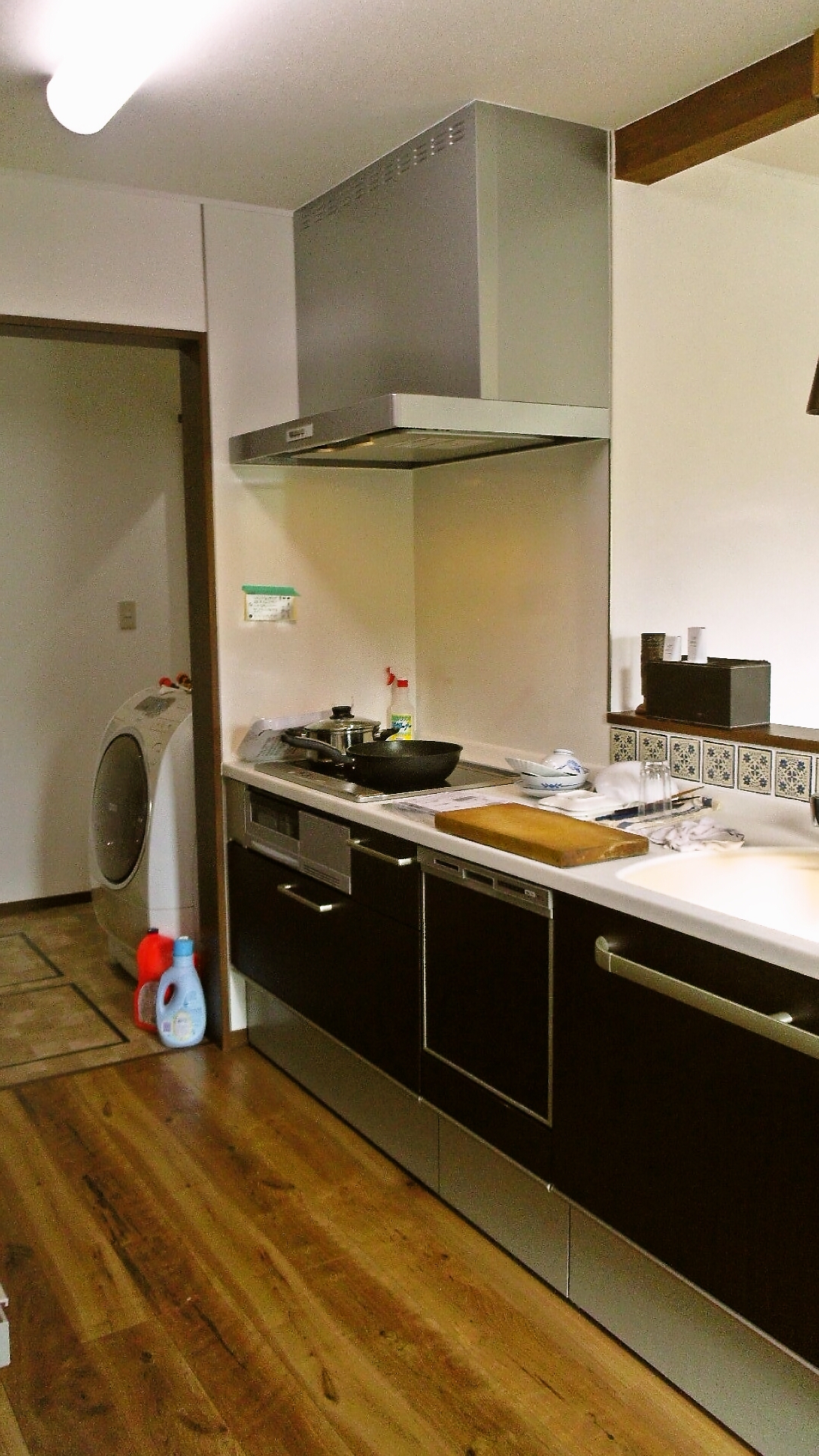 ダイニングとリビングの間仕切り壁を撤去し、キッチンからリビングまで見渡せる広々としたワンフロアーを実現しました。北側の一番奥に位置したキッチンは180°角度を変え、奥様が待ち望んだ対面型キッチンに大変身!