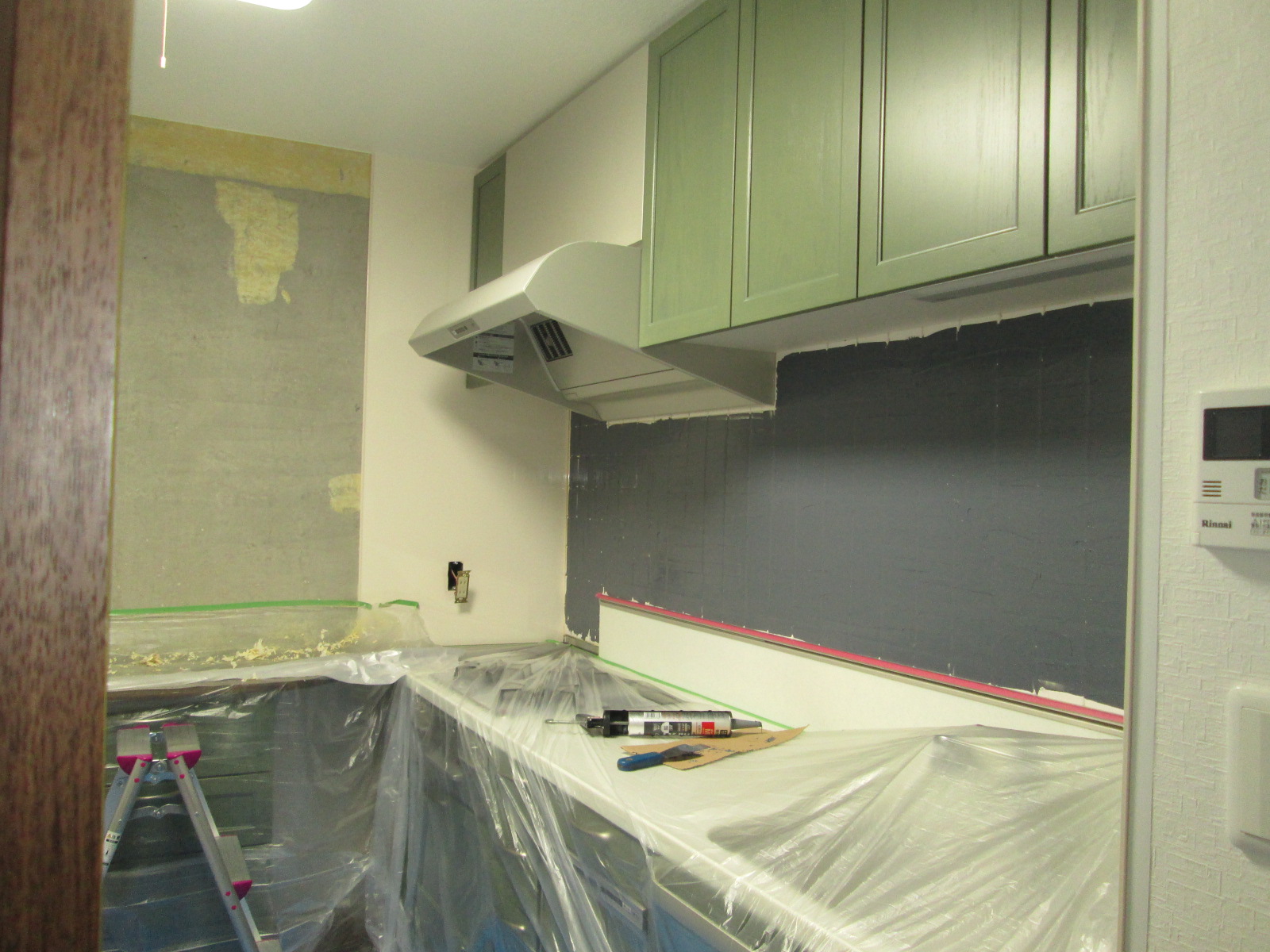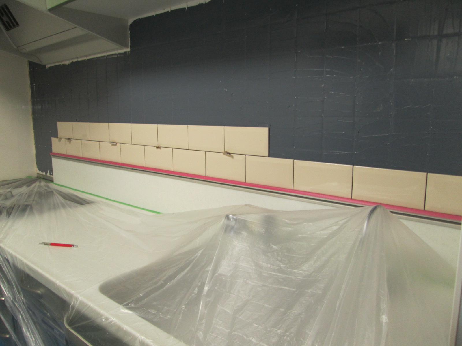 タイル施工中