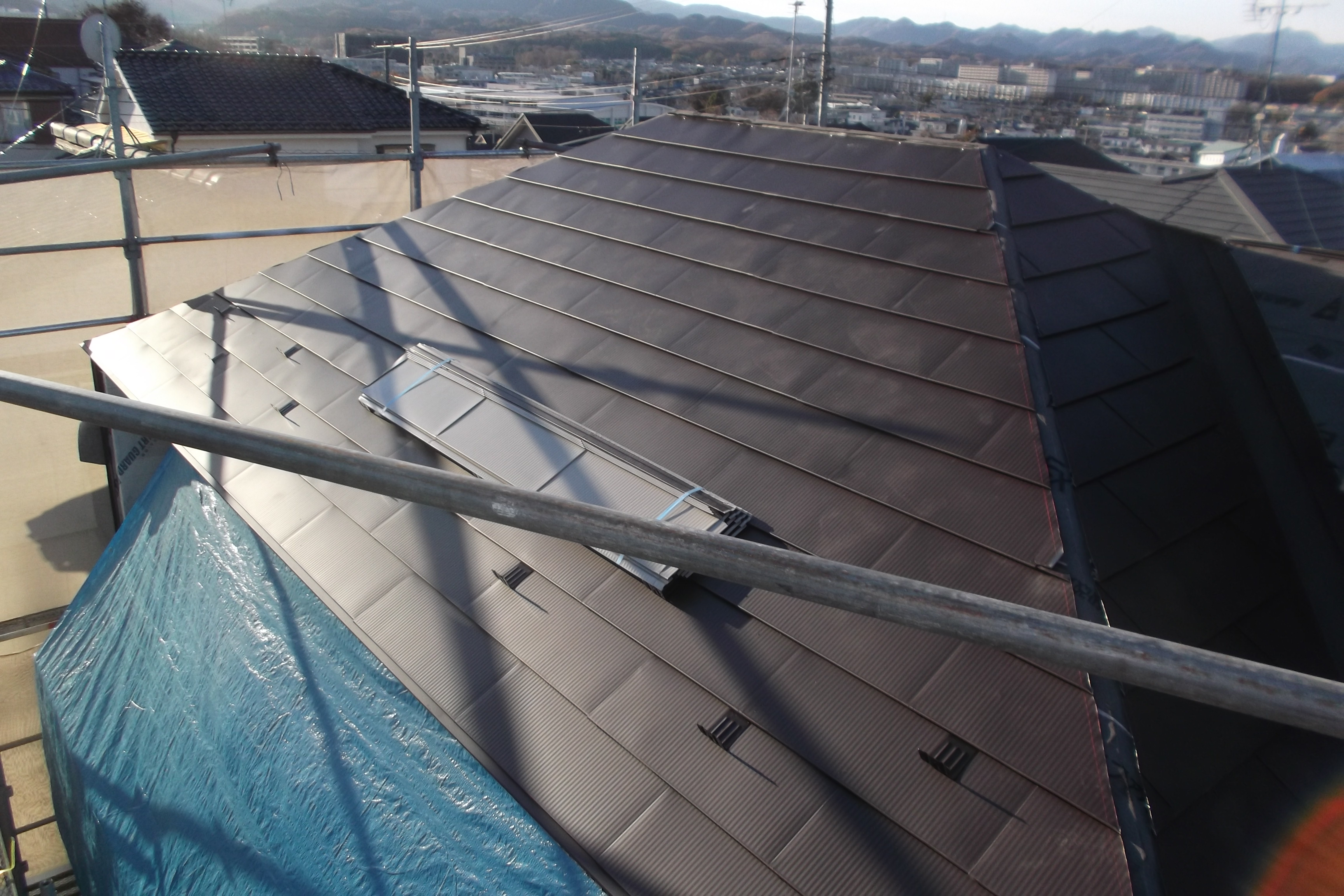 アフター:既存の屋根にガルバリウム鋼板を重ね葺きしました。葺き替えよりも低コストで施工ができます