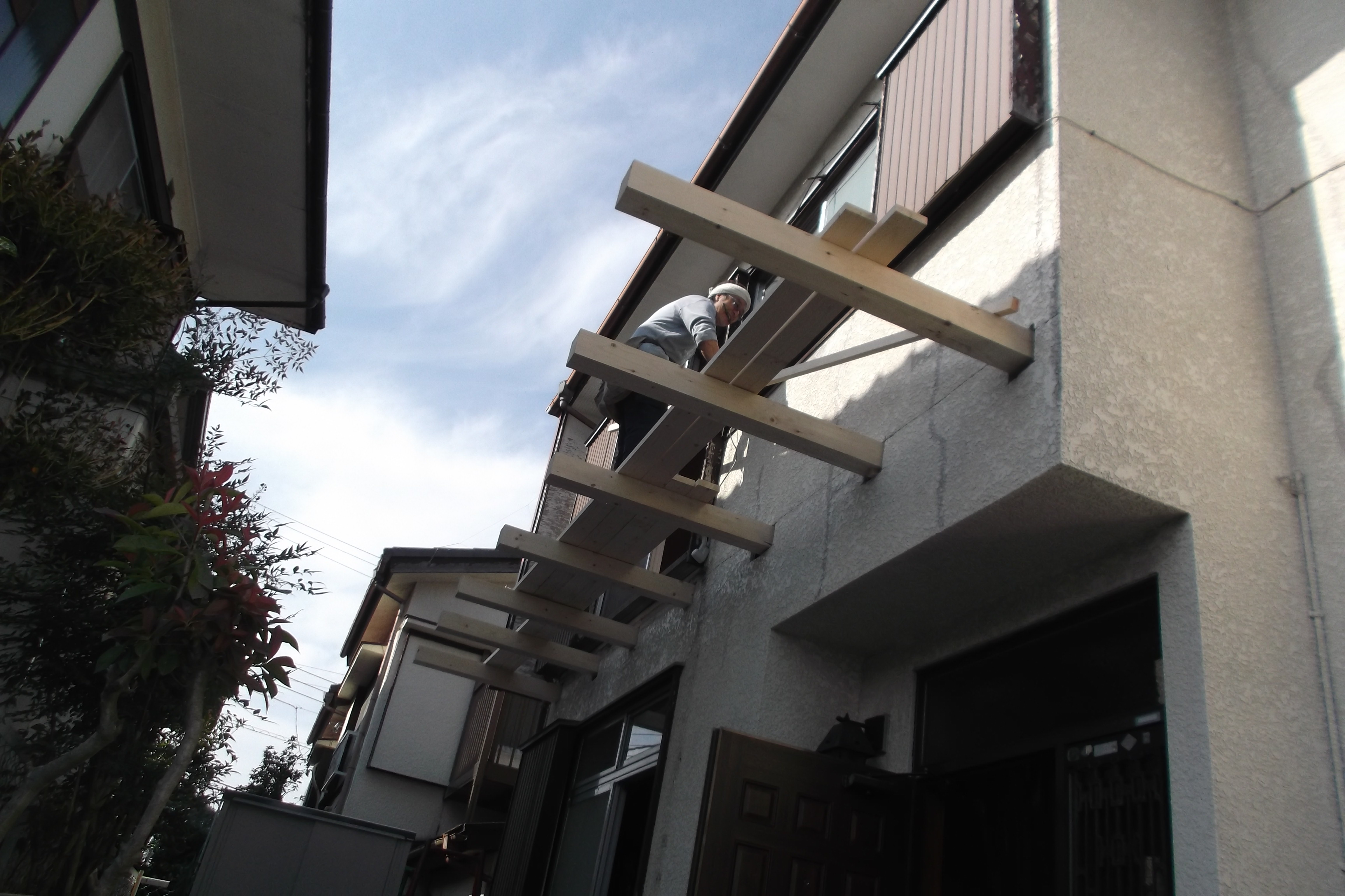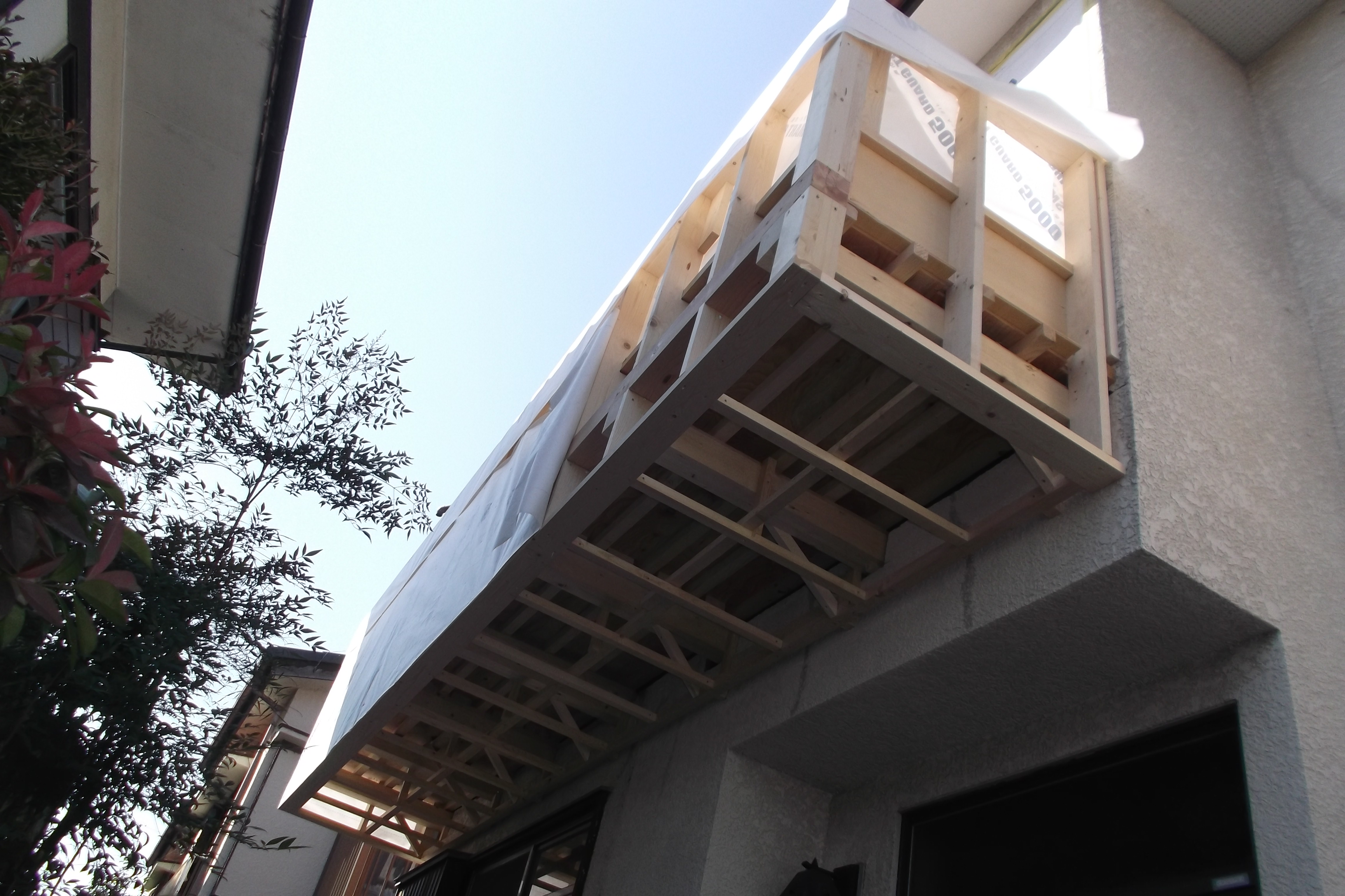 リフォーム中(外):外壁を貫通して持ち出し梁が登場!