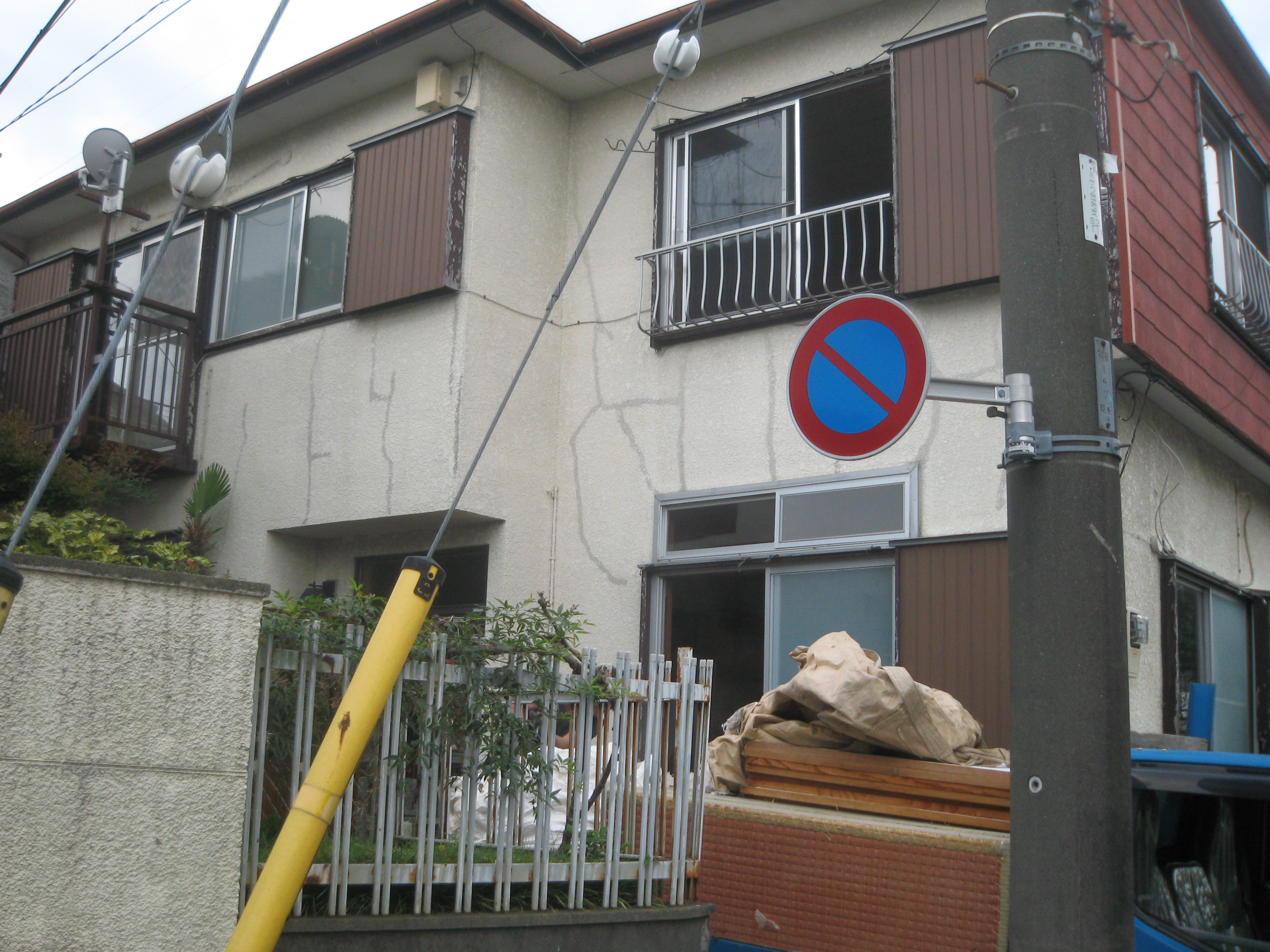 ビフォー:モルタルの外壁には、無数のクラック(ひび割れ)が入っていました