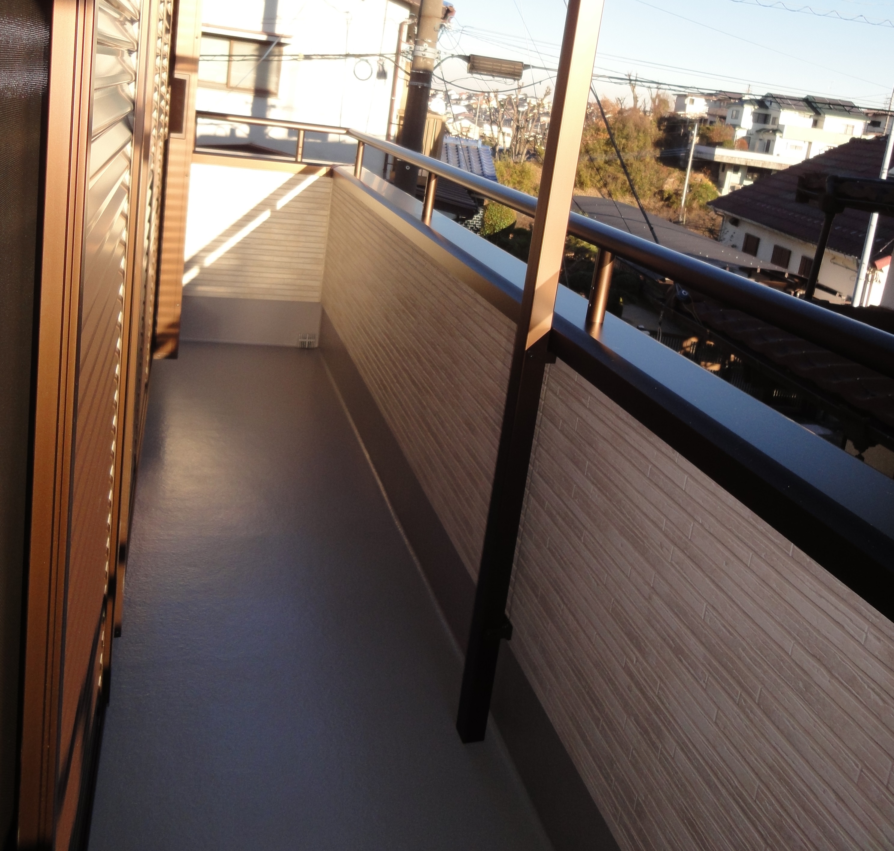 アフター:バルコニーの床と立ち上がりには、FRP防水を施しました