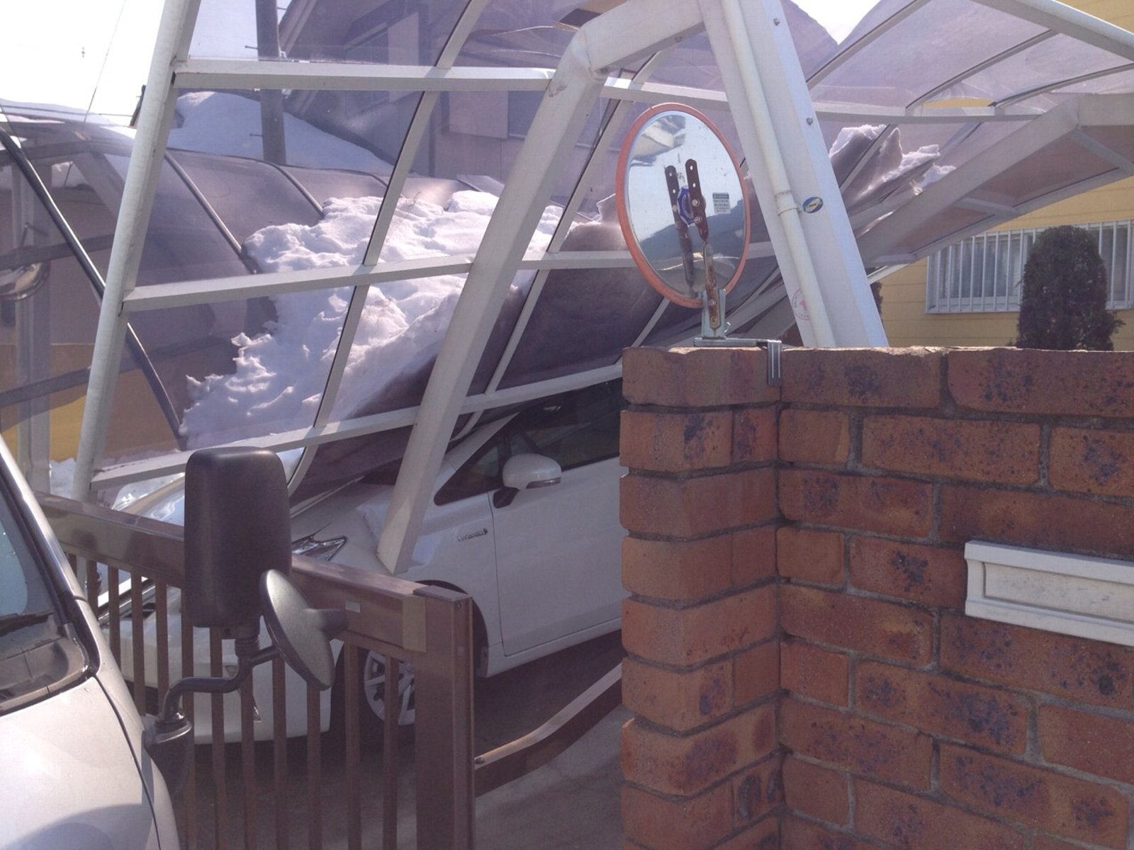 先日の大雪でドーム型のカーポートがこのような状態に・・・![]()