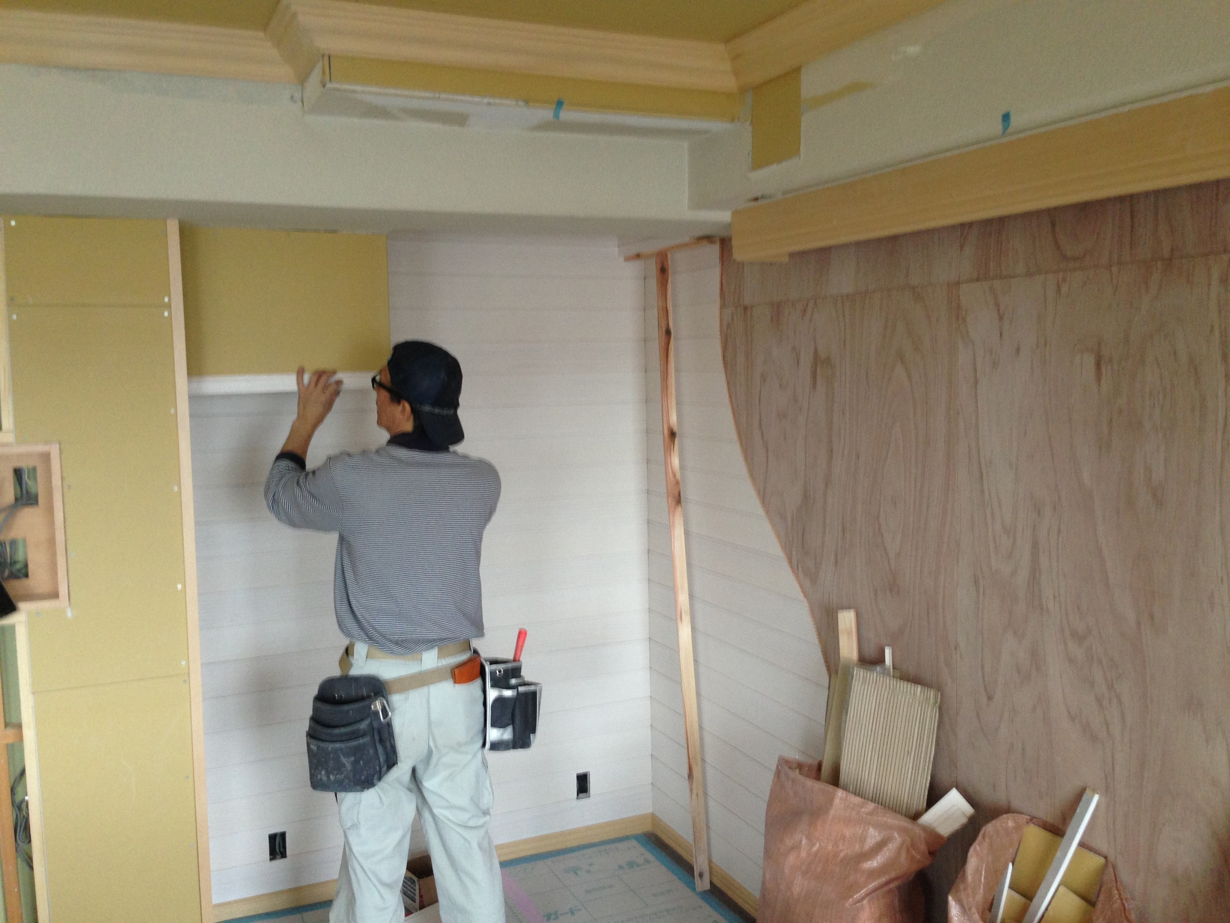 廻りの壁にはこれからクロスを貼ります。