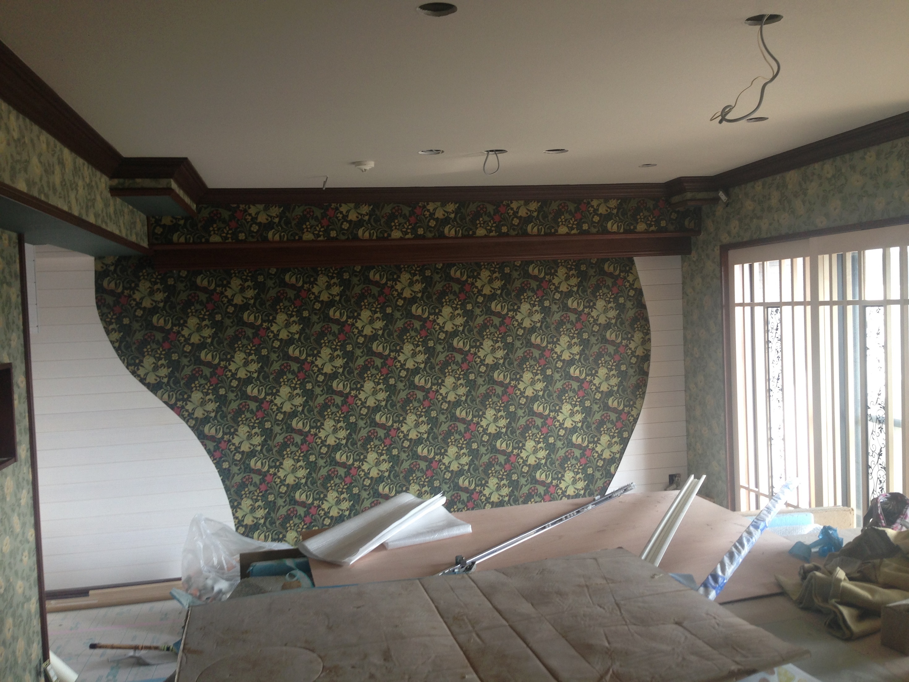 今までの白い壁紙の空間から、クラッシックな雰囲気のお部屋が完成しました。