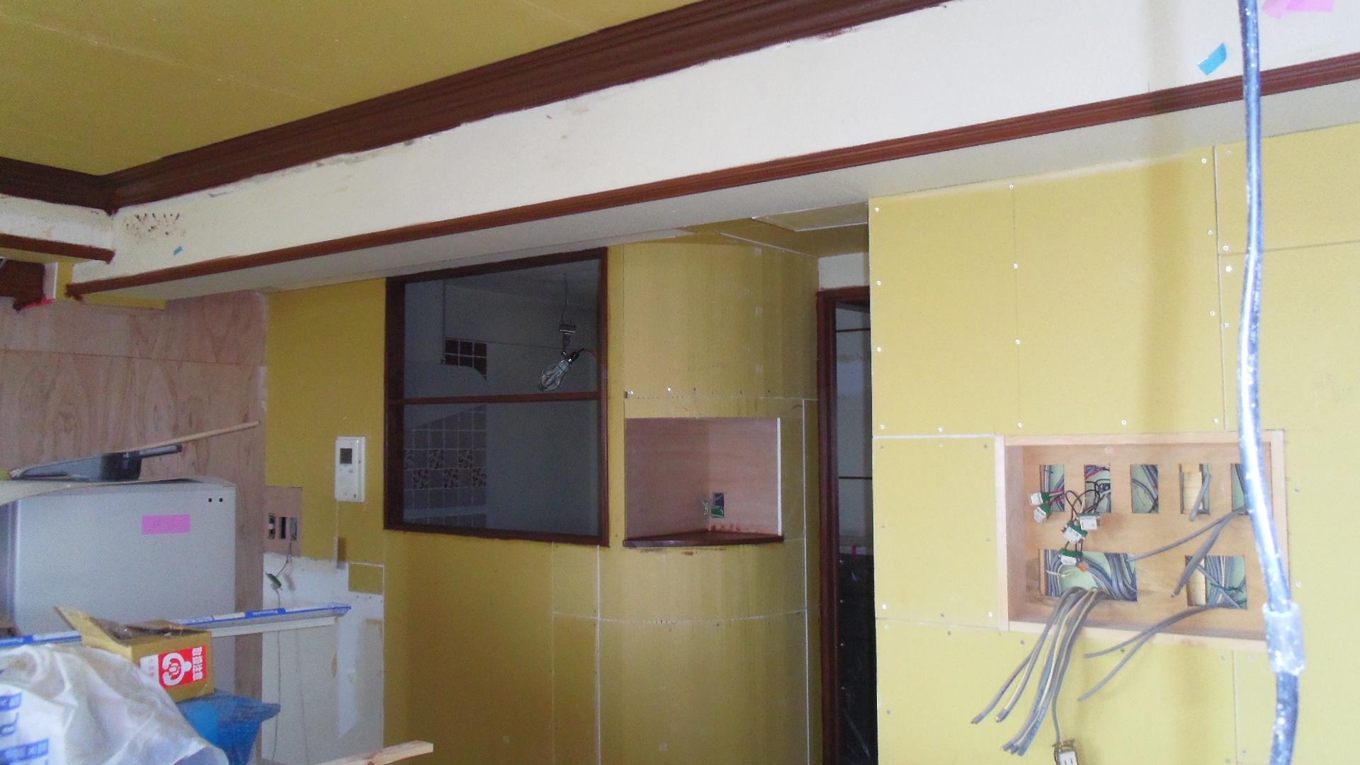 今回は床は貼り替えないので、壁がなくなってしまった部分にアクセントで