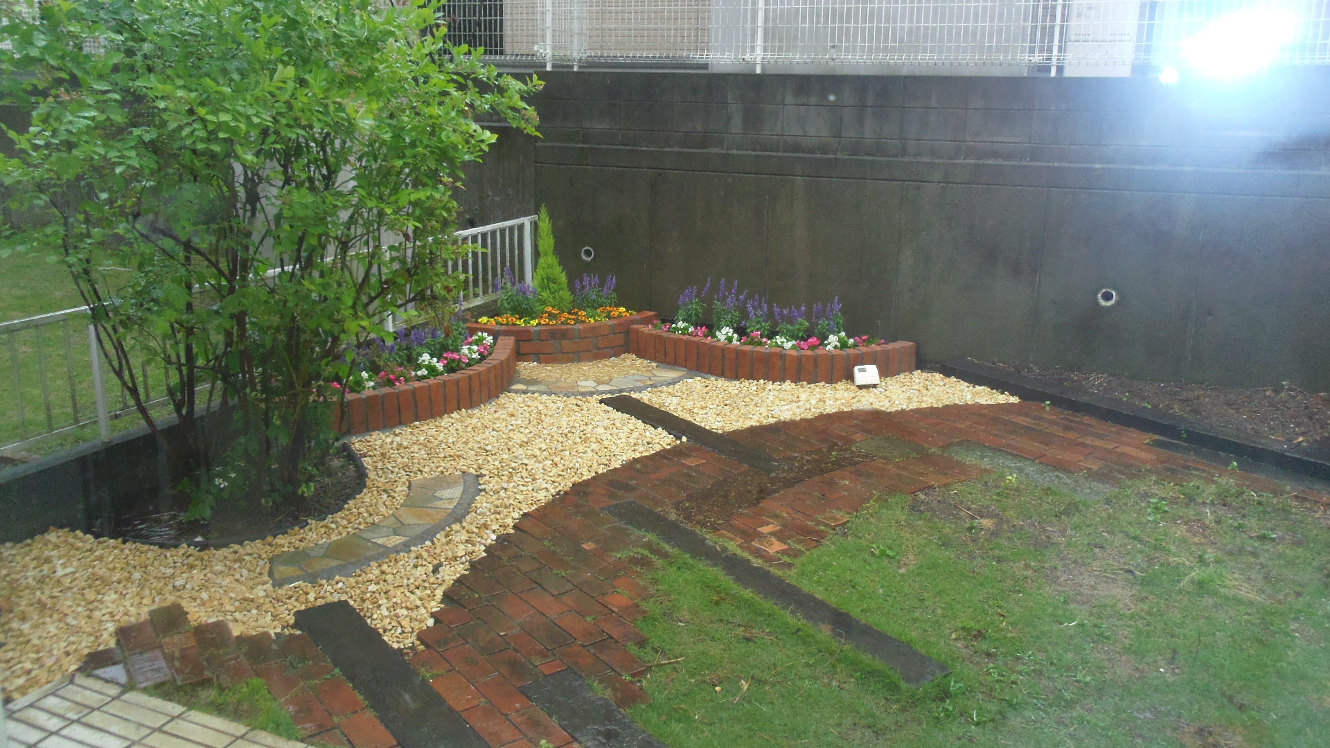 花壇が出来あっがてすぐ、T様がお花を植えてくださいました。