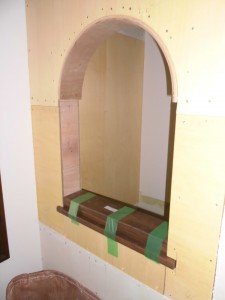 3面壁に囲まれた洗面化粧台スペースがあります。
