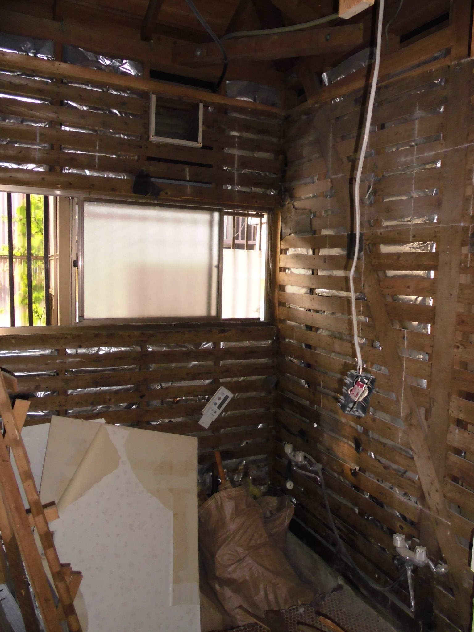 浴室もユニットバスに交換する為、解体しています。