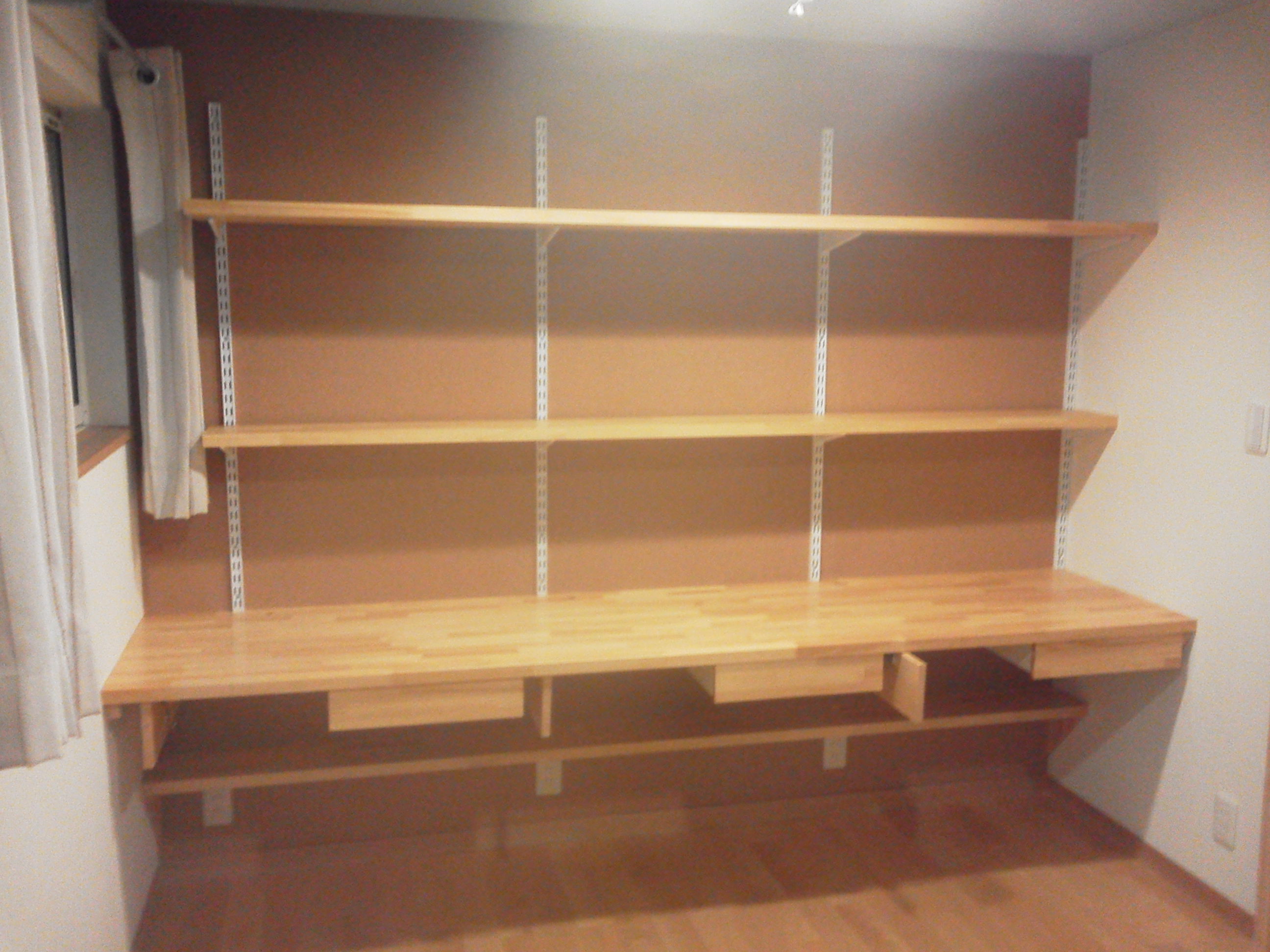 パイン材 コルクを使用して木質感たっぷりの机ができました!