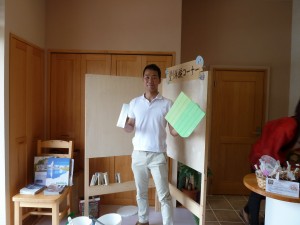 今日はスイス漆喰の塗り体験会を行っていますので、お気軽にお越しください。