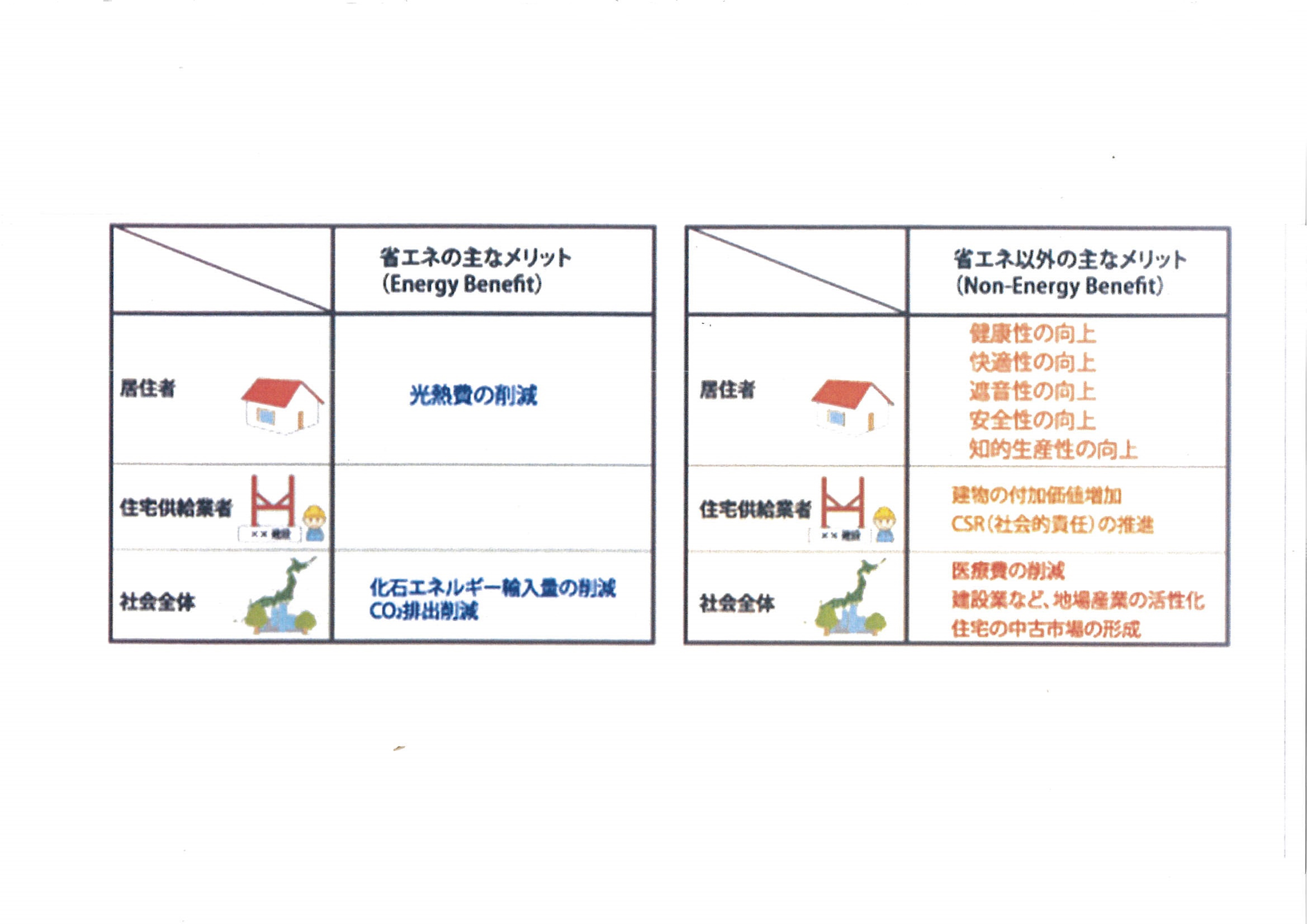 これをエナジーベネフィット(EB)とノンエナジーベネフィット(NEB)と表現されたりしています。