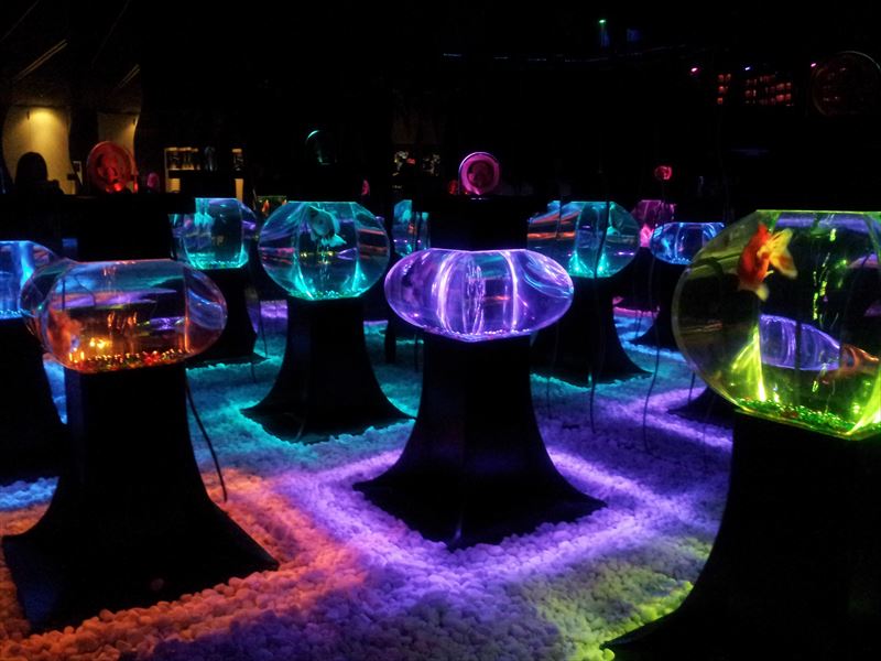 照明と本物の金魚が融合したとても神秘的な展覧会です。