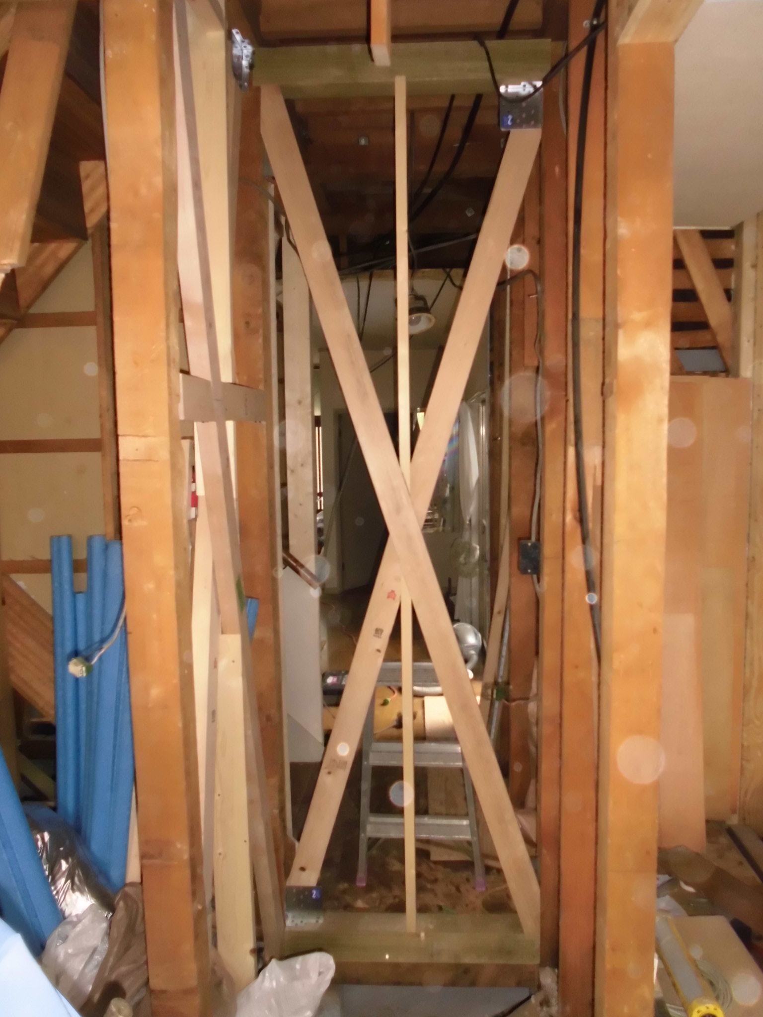 間仕切り壁を解体。耐震の補強工事もしっかり