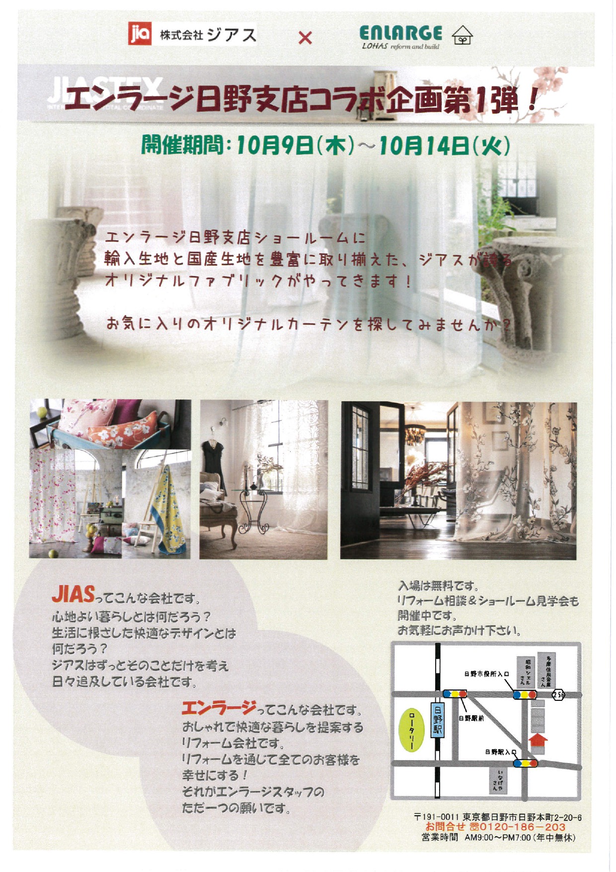ジアスさんは大宮・渋谷・立川・横浜・大阪等にショールームがありカーテンのご提案・採寸・縫製・取付からオリジナルファブリックの開発、インテリアのトータルコーディネイトまで手掛けている会社です。