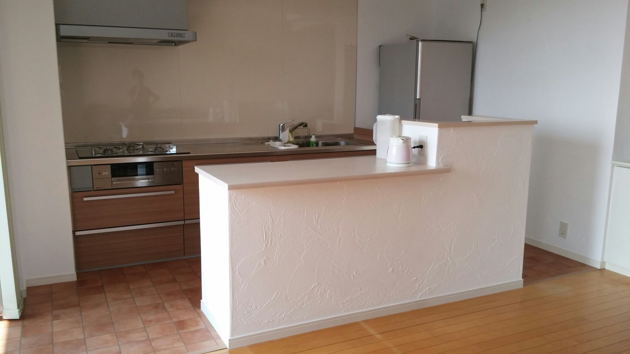 閉鎖的だったキッチンも、壁を取り払い、広々とした空間になりました。