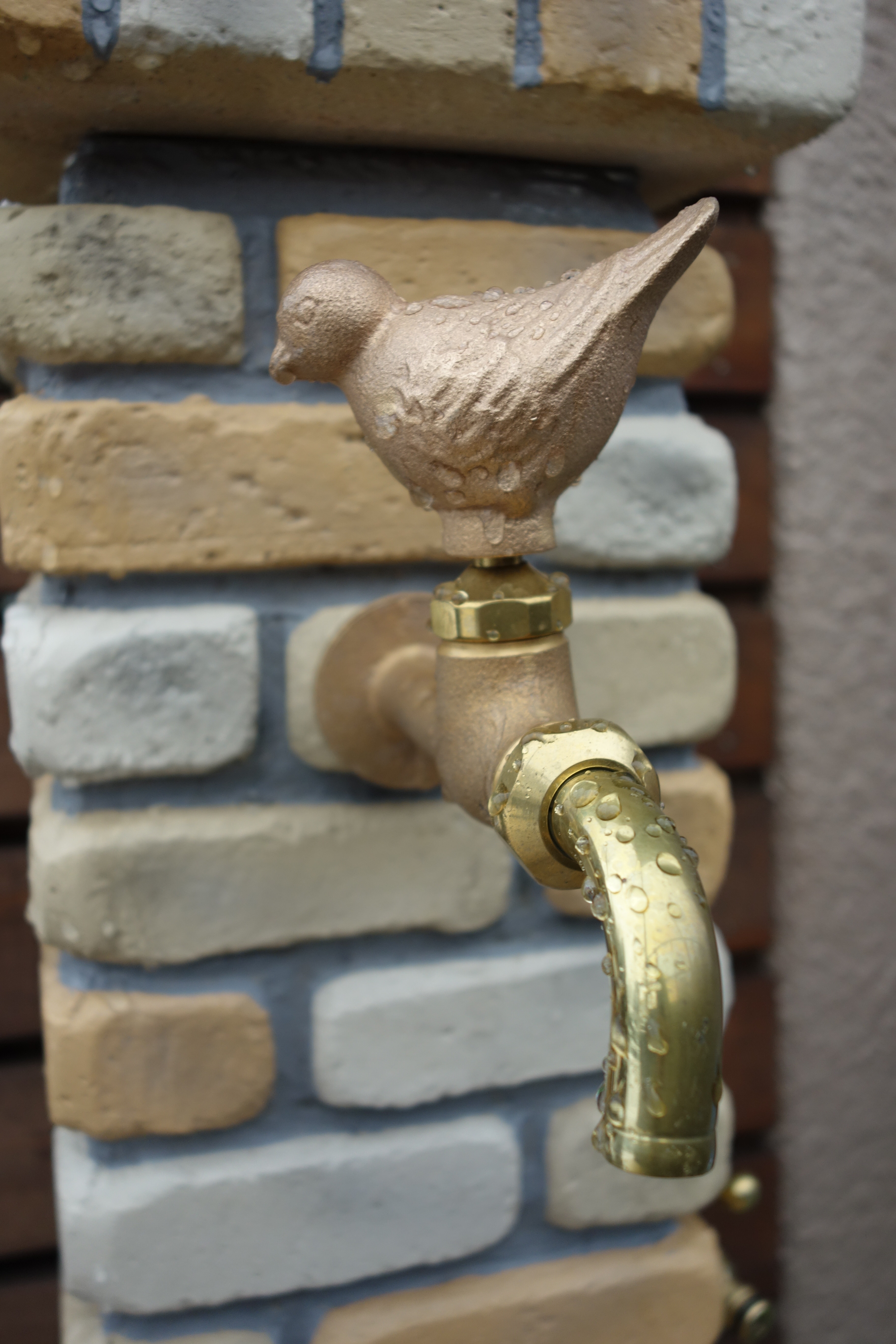 つい最近、かわいらしいレンガ調の立水栓が設置されました!