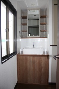 廊下にあった物入れスペースは造作で洗面コーナーへ