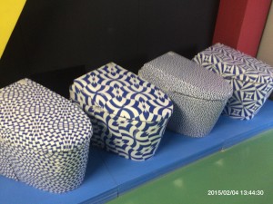 一番左が形が出来た所、真ん中が釉薬と呼ばれる色付けを行った物、左が焼き上がりです。