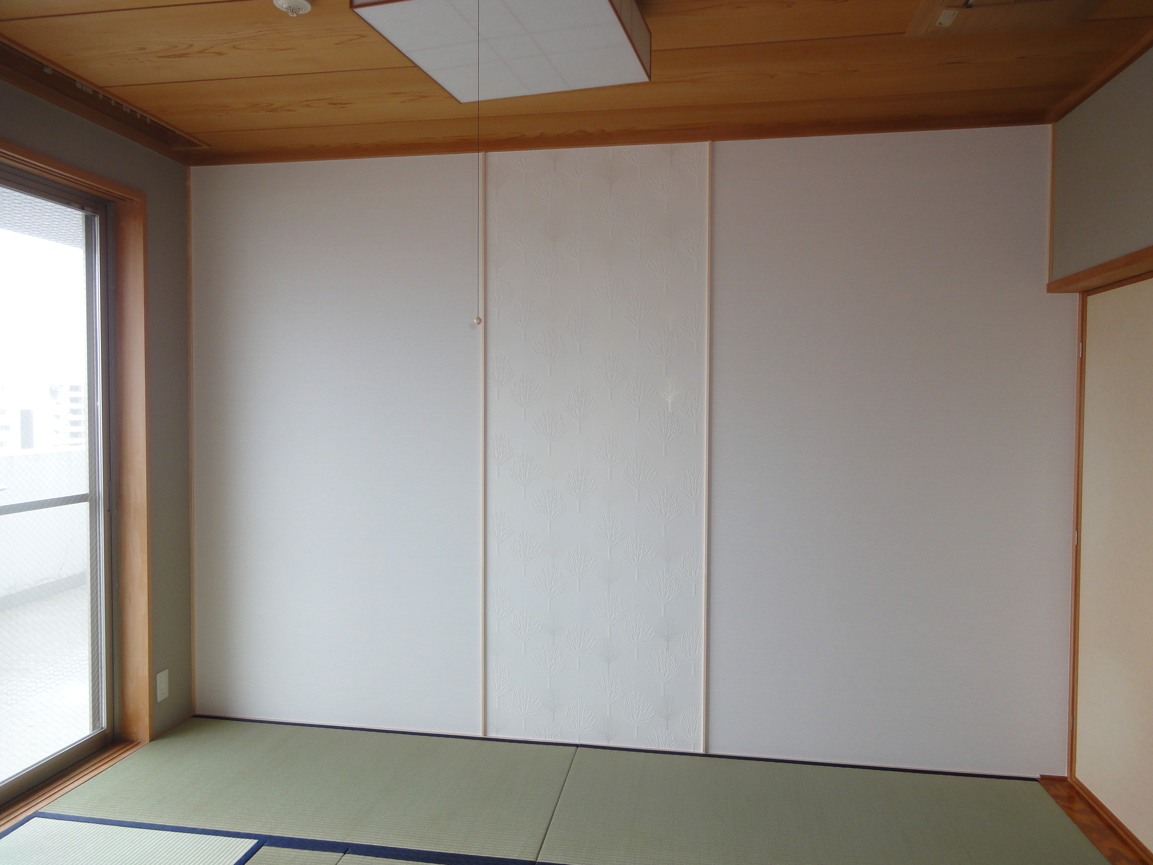 隣の和室から見た間仕切り壁もアクセントになるようにクロスを貼りました。