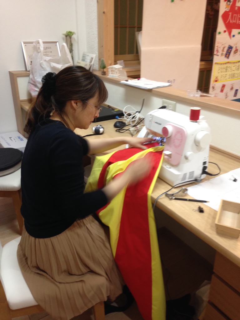田中チーフがミシンでチクチク何かを作成中
