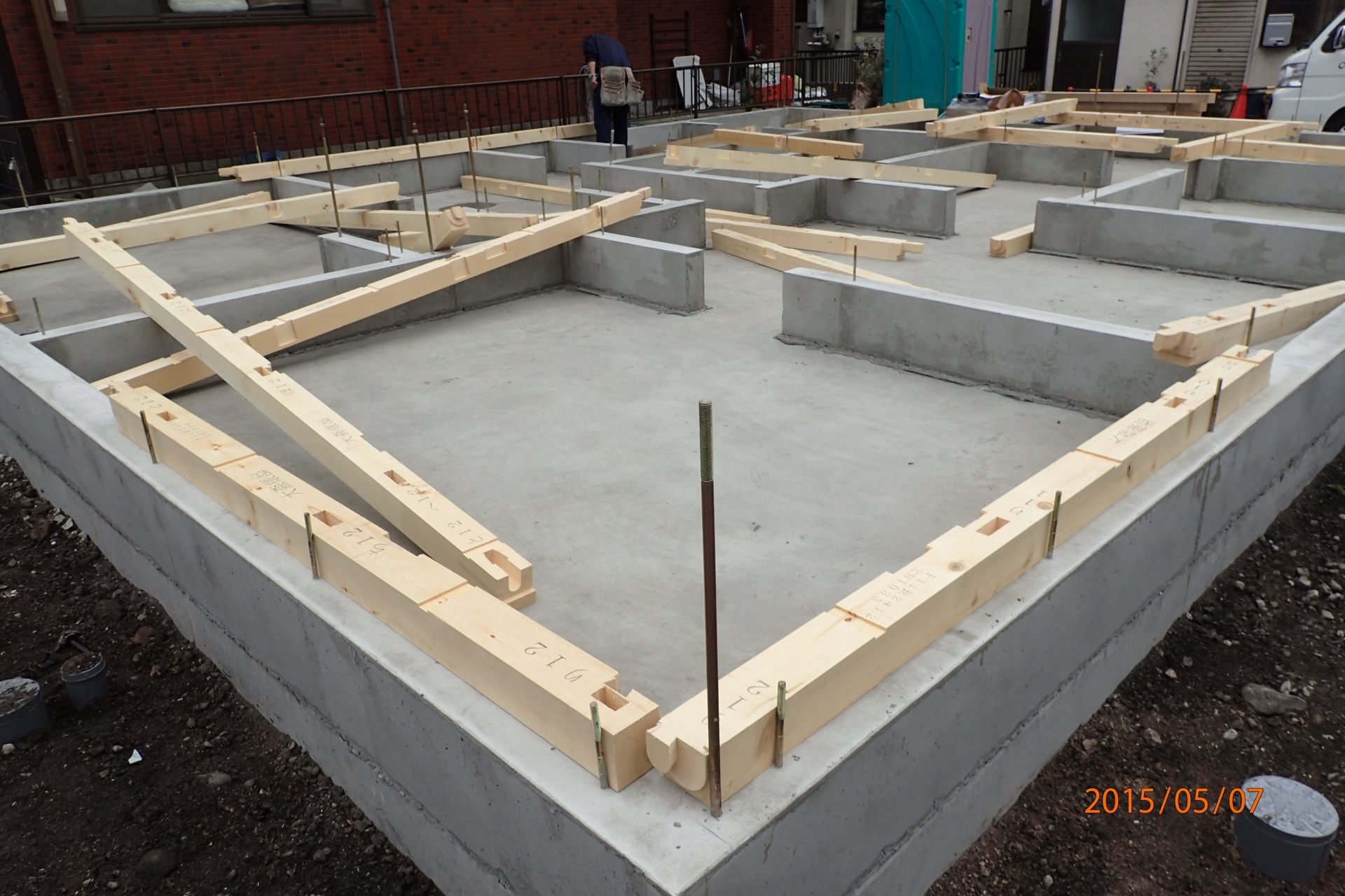 しっかりとした基礎が出来上がり・・・建物の骨組みが出来上がっていきます![]()