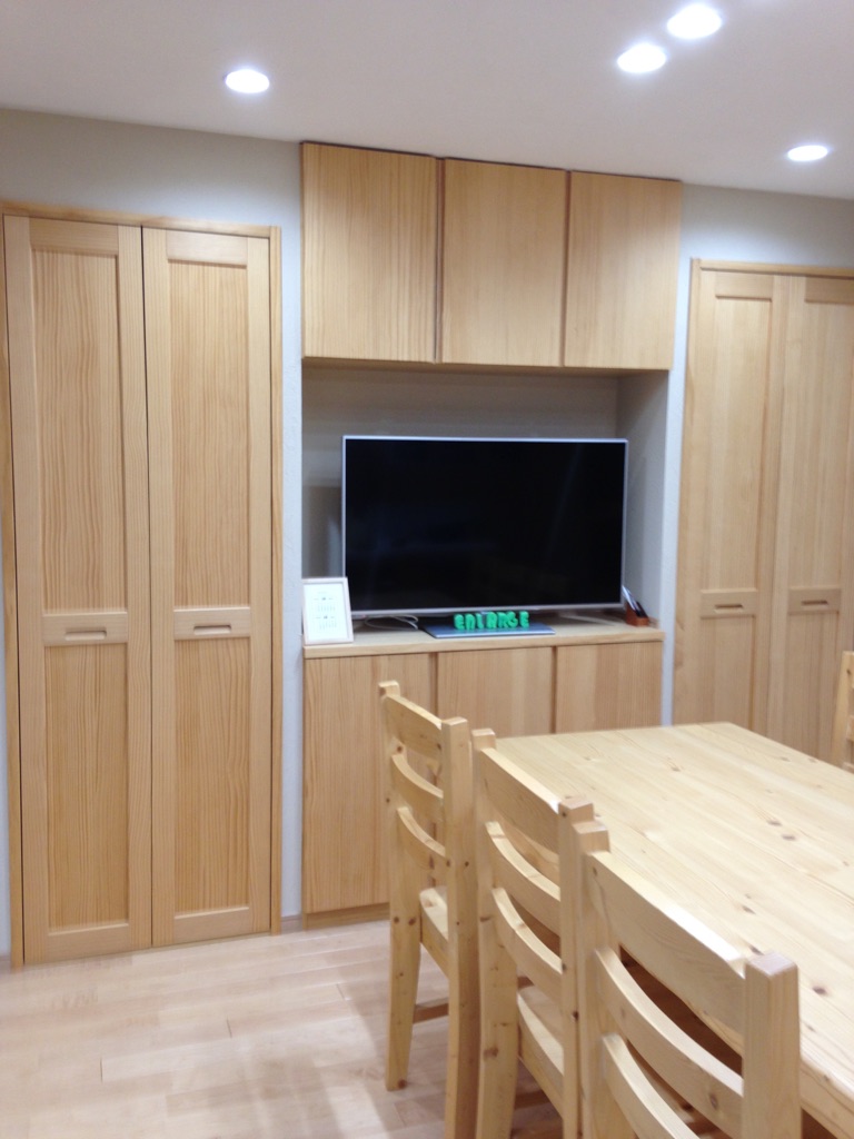 そして、びっくりするのは、パイン材の収納扉です
