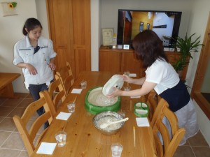 社長とプランナーの裕子さんがキッチンで仕込みを始めました。![]()