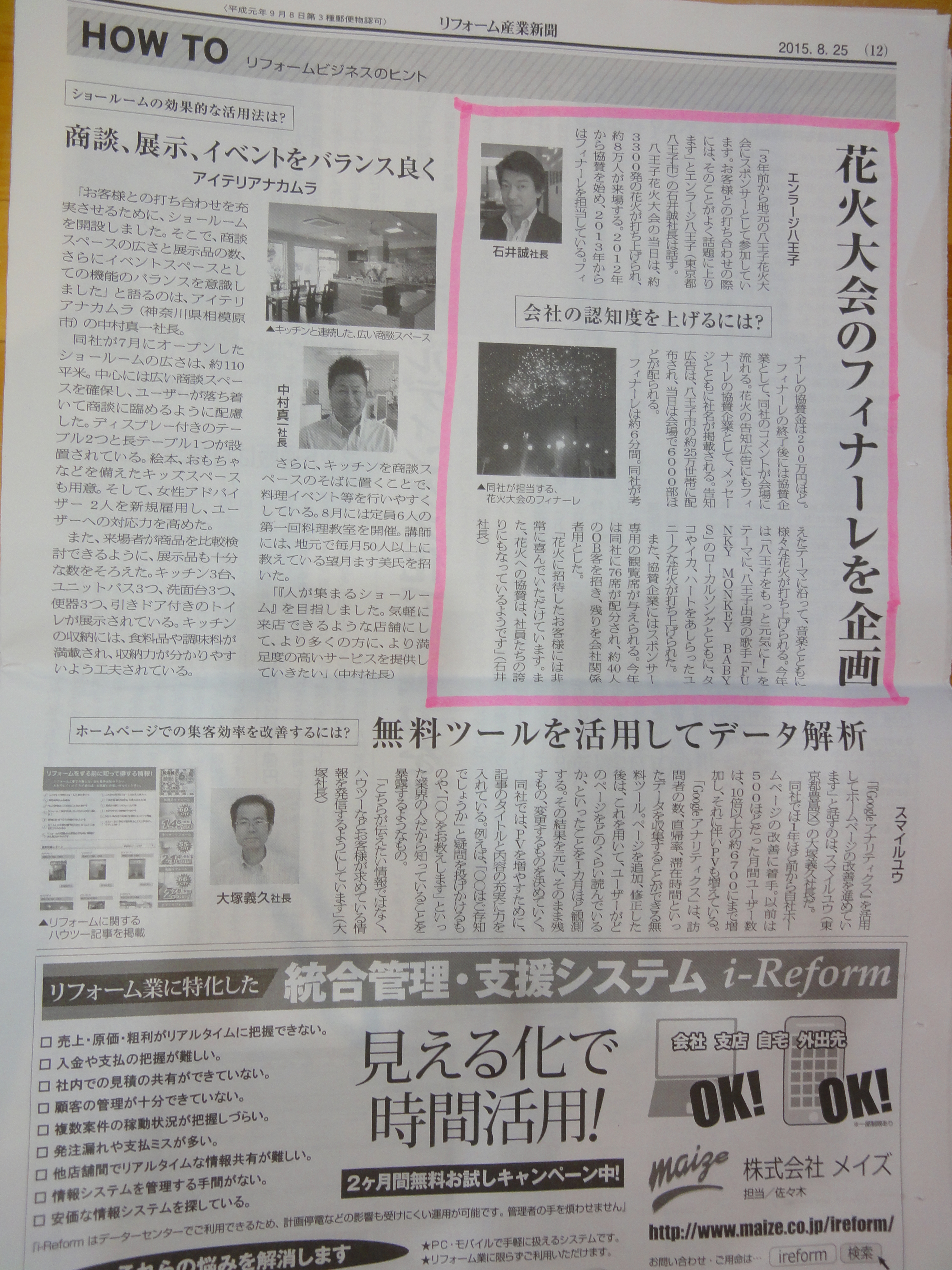 そんなエンラージの花火大会協賛が、リフォーム業界でもちょっとした話題になっているようで、