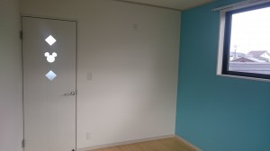 子供部屋はミッキーの扉とポップなアクセントクロス![]()