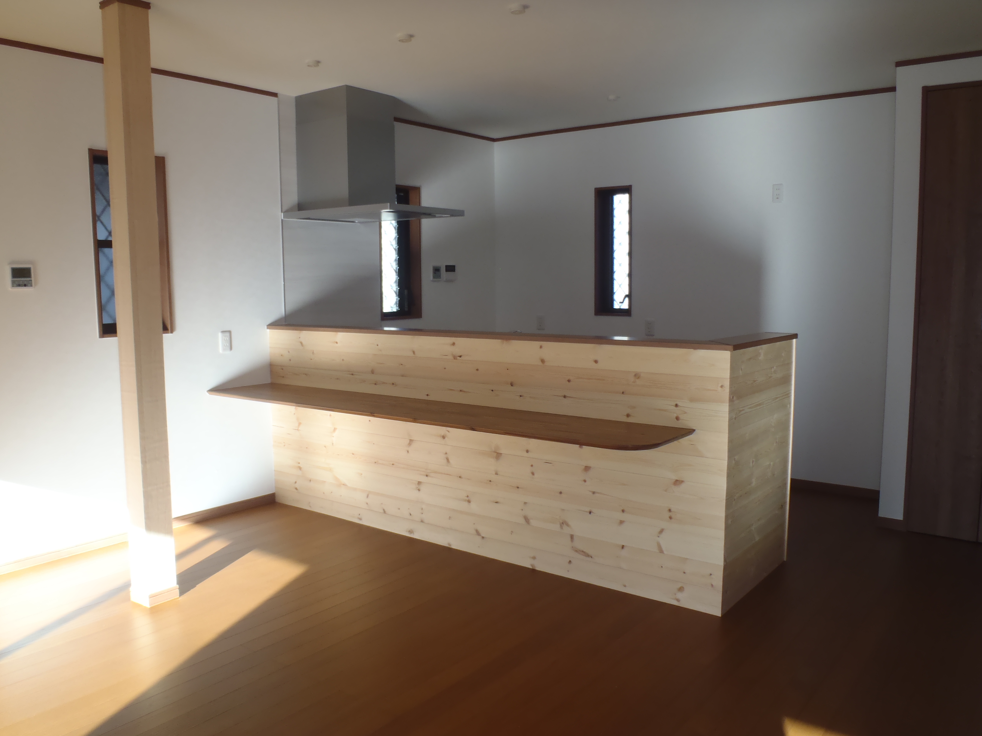 無垢のフローリングにパインの羽目板のナチュラルな対面キッチンに![]()