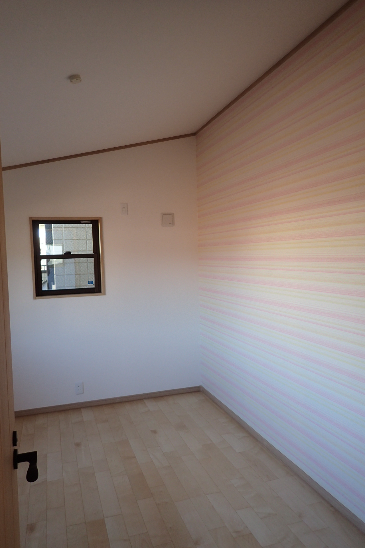 アクセントクロスを選んで頂きました。私自身、子供のころに自分の部屋のカーペットの色や