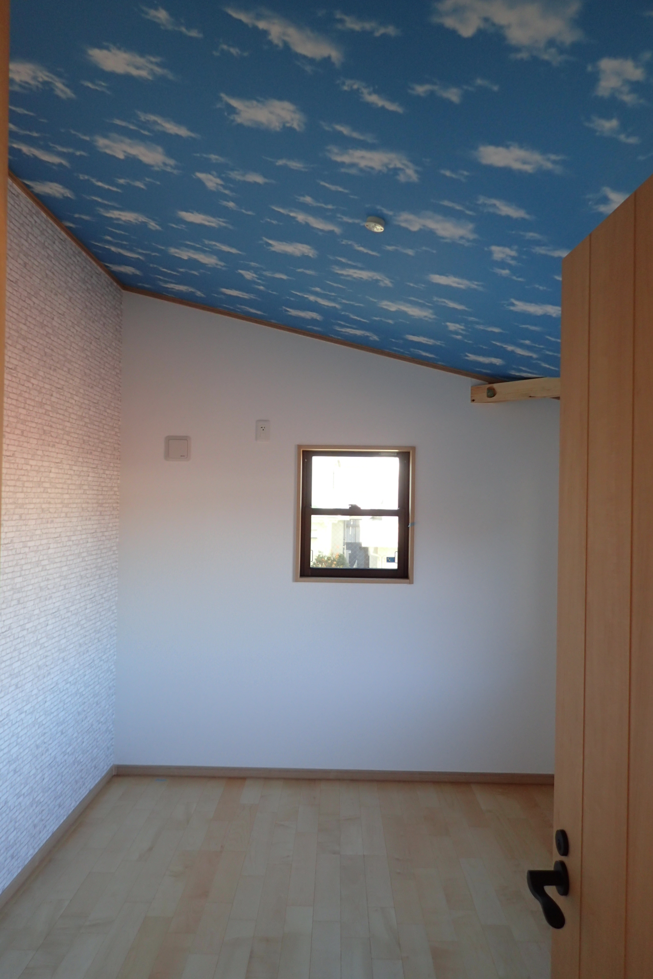 ・ストライプのクロスを横貼にしました。    ・天井が空模様です。