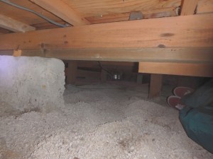 床下収納や床下点検口などから床下に入り、土台や基礎の状態、