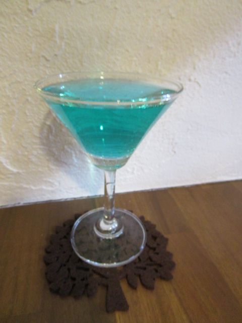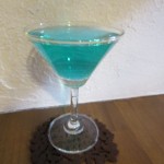 (ほんのりとブルーの色合いがきれいなライチ風味のカクテル。)
