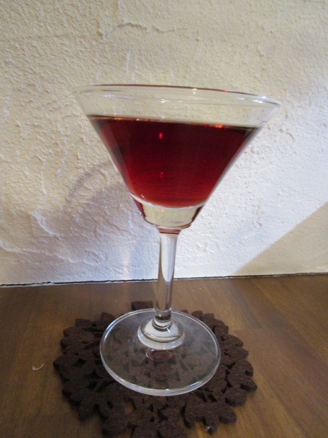 (ジンにベルモットとカシスの甘い風味を加えた、やや甘口のカクテル。)