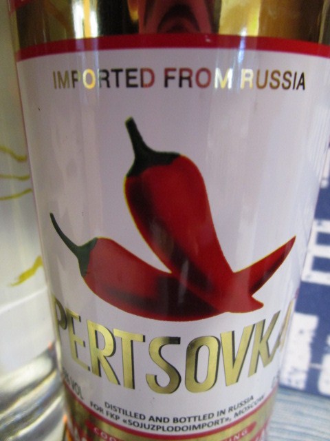 ラベルの絵の通り、唐辛子入りのウォッカです!