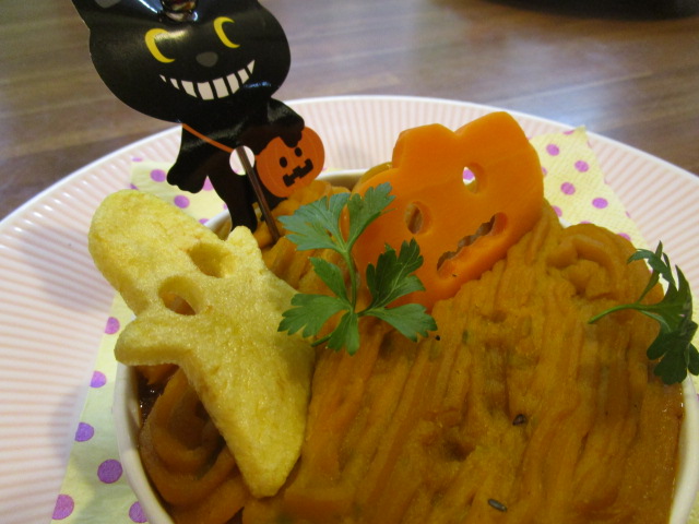 かぼちゃ型のにんじんや、オバケ型のじゃがいもが乗って、