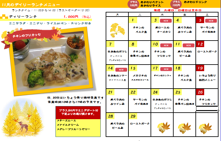 が付いているところは、11月からのデイリーランチの新メニューです3日・・・豚ロースのチーズカツ