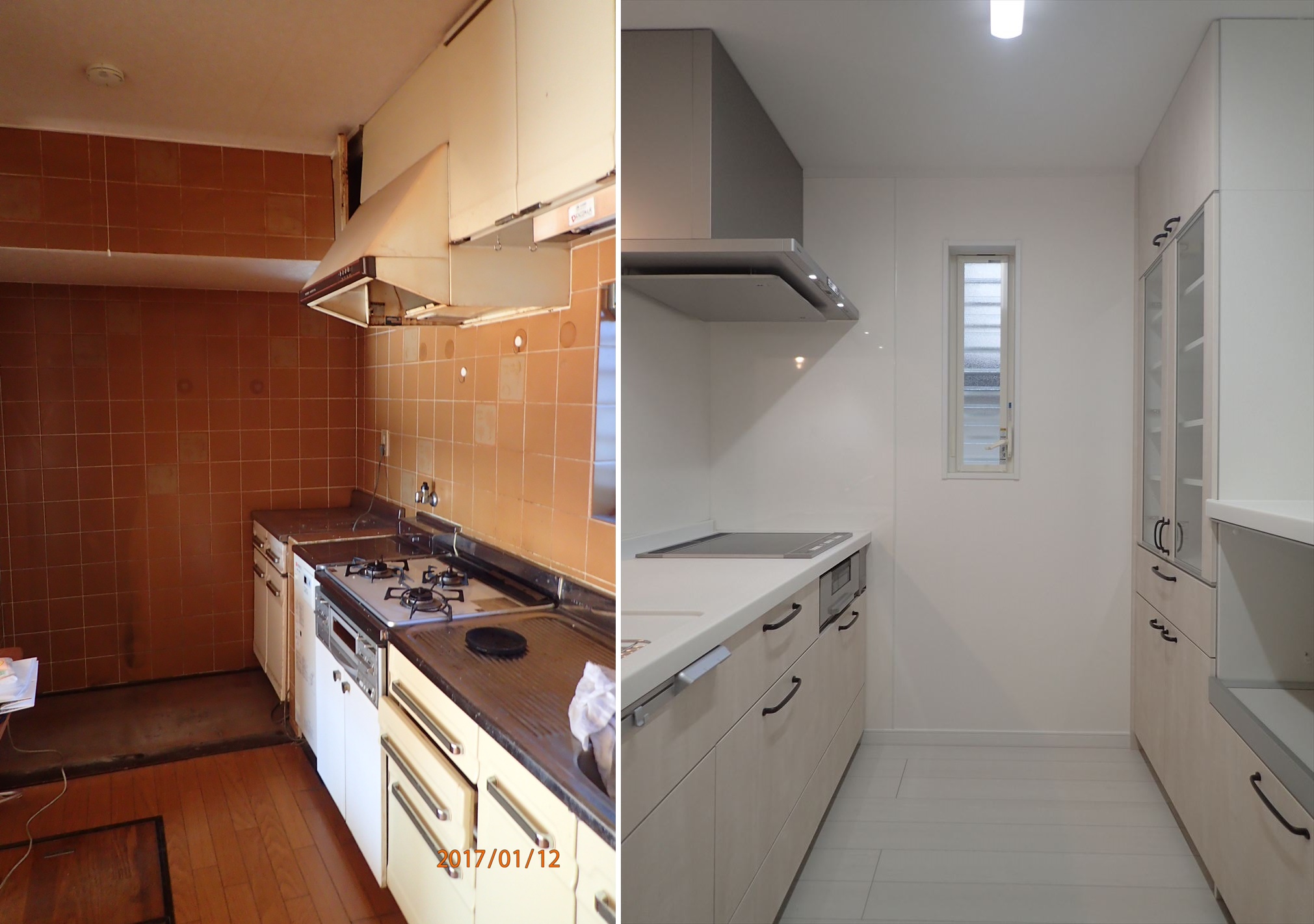 壁付けキッチンから対面キッチンへ!カウンターをつけて作業スペースも広々です。