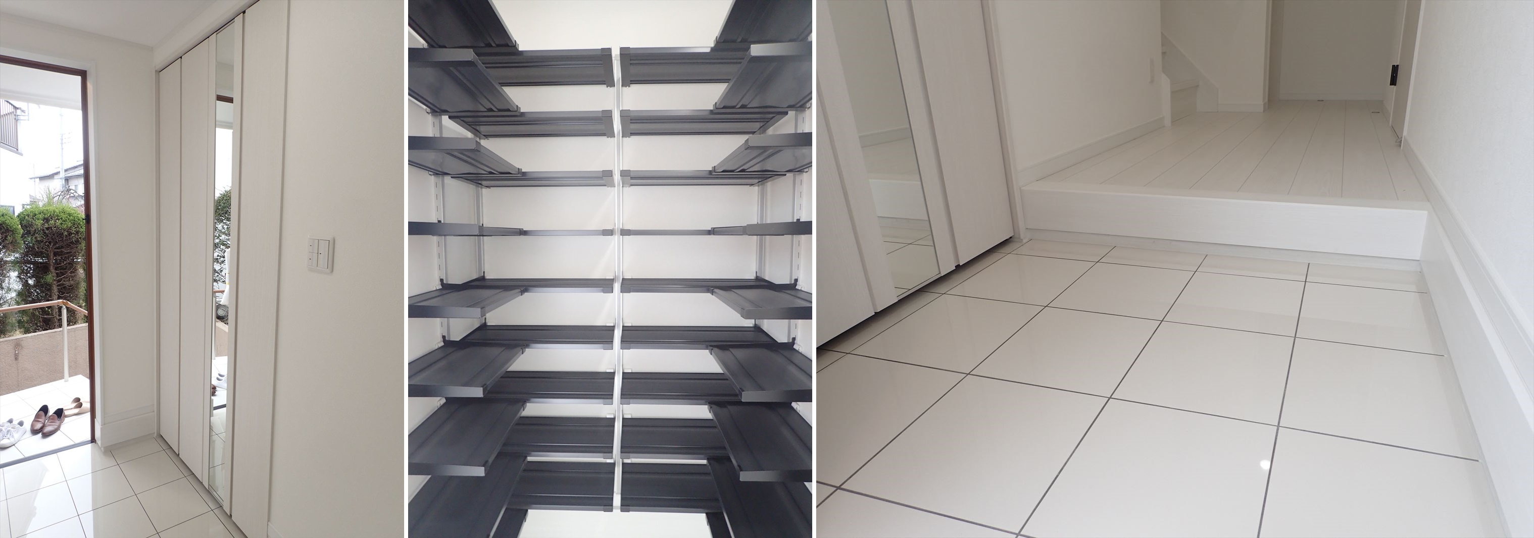 シューズインクロークはたくさん靴が収納できるようコの字スタイルで