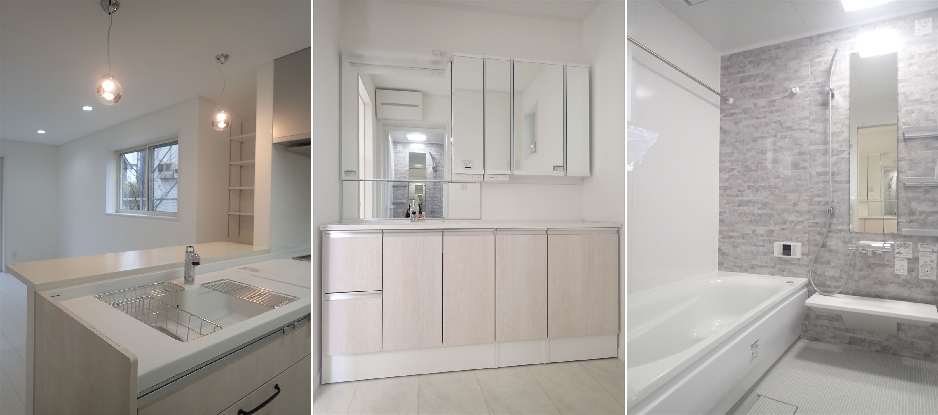 ホワイトで明るく清潔感のある水廻り商品に統一しました。