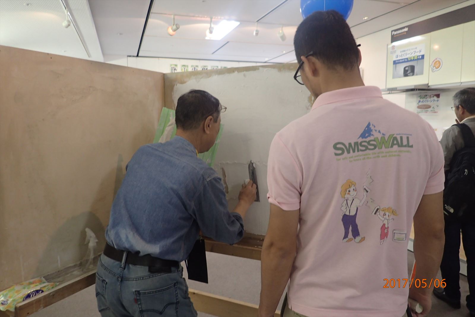 左官屋さんのレクチャー付きの塗り体験コーナーです。7日(日)は珪藻土の塗り体験をやっています。
